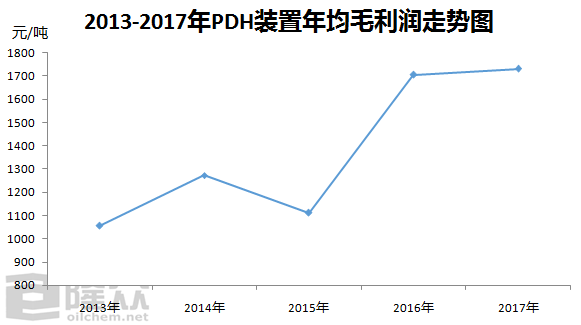 由上圖可見,2016-2017年丙烷脫氫毛利潤表現(xiàn)樂觀,裝置均無虧損情況,尤其在夏季,受原料氣丙烷價格低位,使丙烷脫氫裝置獲利更為理想。華南地區(qū)是國內進口氣集中地,而丙烷脫氫裝置,工藝來源于國外,原料氣丙烷也基本依賴進口,裝置在華南投產建設,原料提供方便。目前,華南地區(qū)的進口丙烷資源多作為工業(yè)氣或者搭配丁烷或者搭配當地煉廠氣今日民用市場,均是作為提供熱值的燃料,據隆眾數據監(jiān)控,2016年華南進口毛利潤在257元/噸左右,2017年至今進口毛利潤在194元/噸左右,相比丙烷脫氫裝置利潤優(yōu)勢十分明顯。