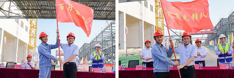 隨后,王立貴向揭陽(yáng)項(xiàng)目建設(shè)團(tuán)隊(duì)和盛元達(dá)黨支部分別授予了“百日會(huì)戰(zhàn)”旗和“黨員先鋒隊(duì)”旗。鮮艷的旗幟在空中迎風(fēng)飄揚(yáng),宛如翱翔的雄鷹,昭示著揭陽(yáng)團(tuán)隊(duì)在接下來(lái)的百日大會(huì)戰(zhàn)中將奮勇爭(zhēng)先、爭(zhēng)創(chuàng)佳績(jī)。