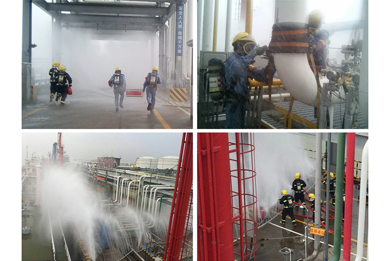 下午16 時,碼頭3泊位一艘液化烴(丙烯)船正在進行卸船作業,碼頭操作員甲、乙兩人負責作業過程中的監護,突然卸貨管線出現液化烴噴射而出,迅速氣化。操作員甲立即關閉管線上的閥門,通知船方停泵關閥。操作員乙立即啟動2泊位前沿水幕及水幕水帶,通知碼頭所有人員進行疏散,同時報告中控室和值班長。一場應急救援由此展開。