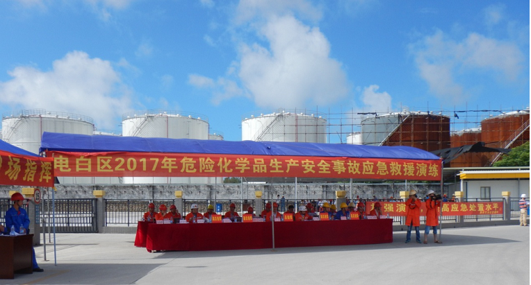 2017年6月29日,按照茂名市港航管理局和電白區(qū)政府布署,由新源茂名承辦的大型跨區(qū)安全生產綜合應急演練在新源油庫舉行。電白區(qū)政府應急辦、區(qū)安監(jiān)局、茂港區(qū)公安消防大隊、茂石化專職消防支隊水東中隊、區(qū)衛(wèi)生局