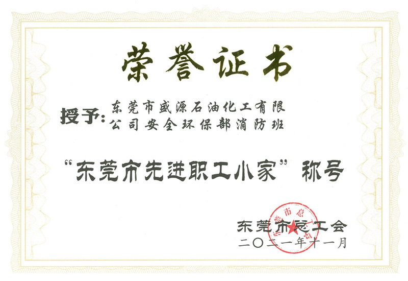 近日,巨正源所屬盛源石化公司安全環保部消防班被東莞市總工會授予“東莞市先進職工小家”榮譽稱號。